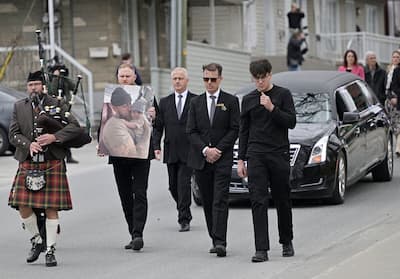 In Saint George, Friday, the funeral procession wandered for the first time along 1Dr Avenue before the religious ceremony led by priest Alain Beaulieu.